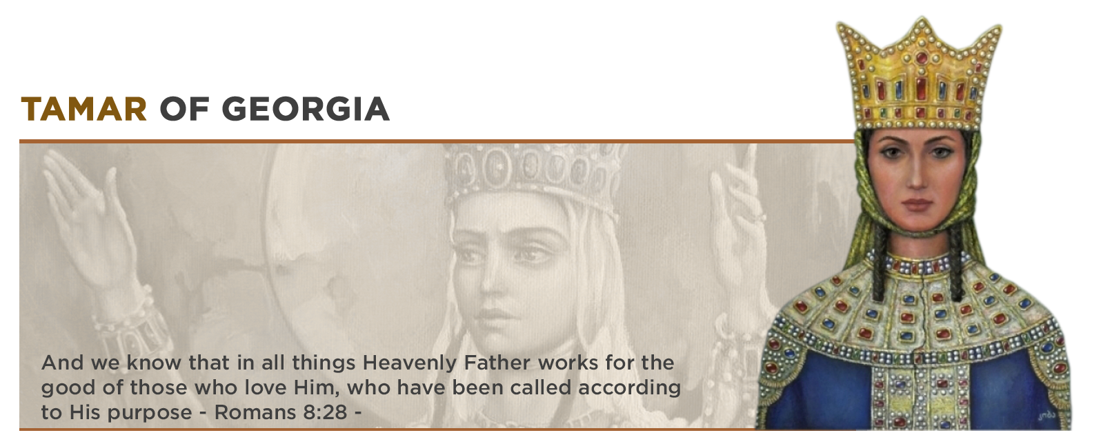 The royal title was correspondingly aggrandized. It now reflected not only Queen Tamar's sway over the traditional subdivisions of the Georgian realm, but also included new components, emphasizing the Georgian crown's hegemony over the neighbouring lands. Thus, on the coins and charters issued in her name, Queen Tamar is identified as: By the will of God YHUH (silent), King of Kings and Queen of Queens of the Abkhazians, Kartvelians, Arranians, Kakhetians, Aremenians, Shrivanshah and Shahanshah; Autocrat of all the East and the West, Glory of the World and Faith; Champion of the Yeshua the Saviour and Messiah.
